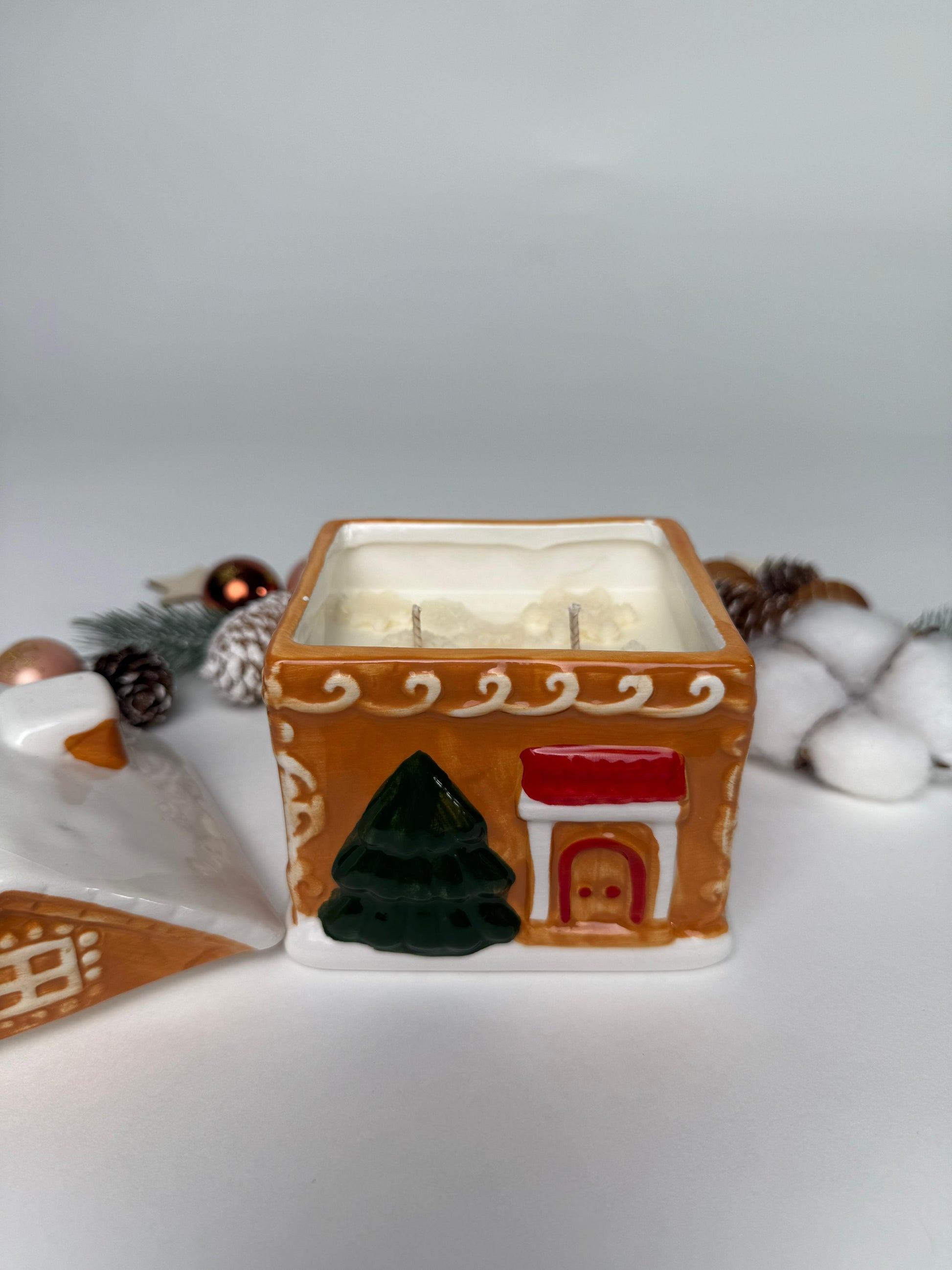 Das liebevoll gestaltete Keramikhaus mit feinen Wachsschneeflocken im Inneren erinnert an eine kleine, ruhige Winterstraße und macht jede Kerze zu einem ganz besonderen Blickfang. Das hübsche Gefäß kann nach dem Abbrennen als Dose weiterverwendet werden. Jede Kerze wird in liebevoller Handarbeit gegossen – jede ist echtes Unikat